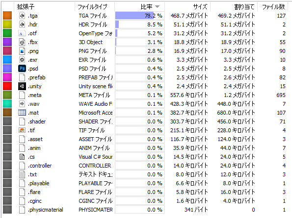 今回の場合 .tgaつまりテクスチャ用の画像ファイルが大多数のようです
