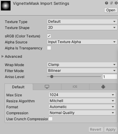 圧縮するテクスチャを選択して、インスペクターを開きます