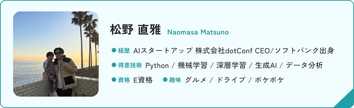 機械学習や生成AIの受託開発・AI学習サービス「aipass」の運営をしている株式会社dotConfという会社で、代表をしております!