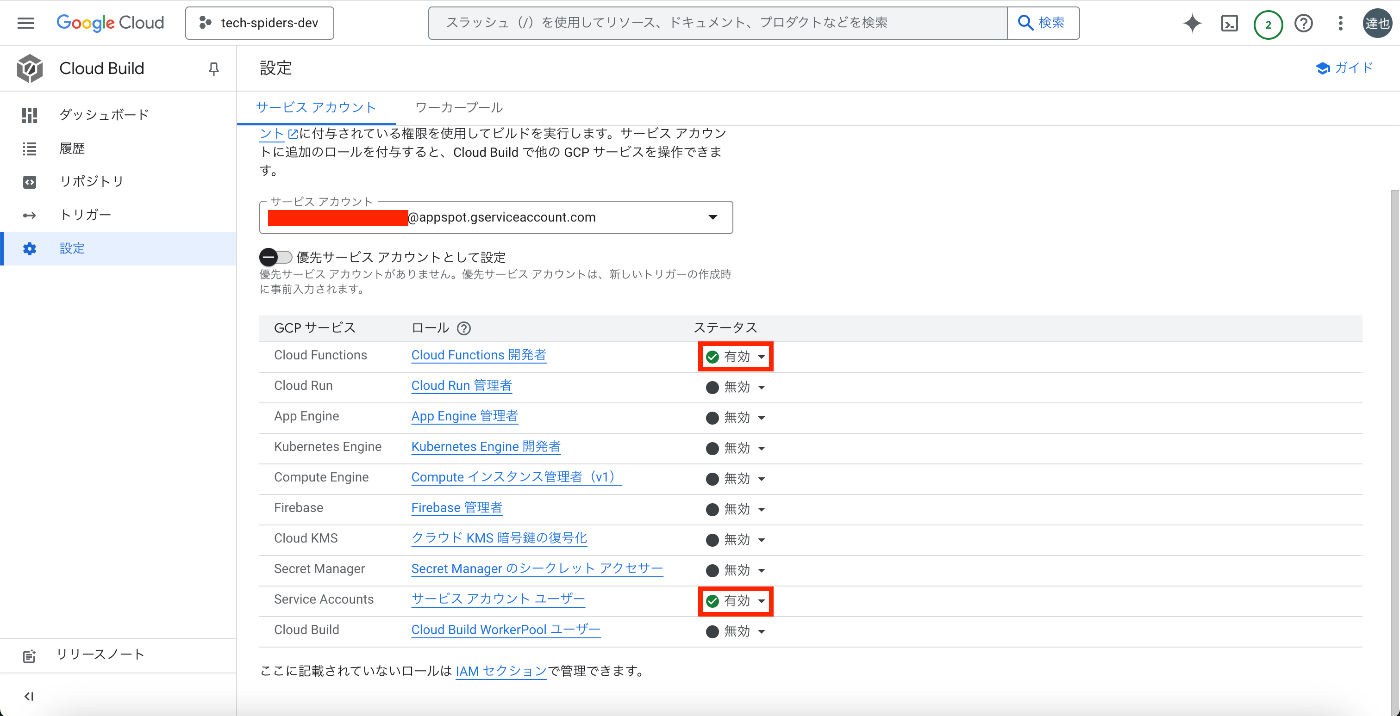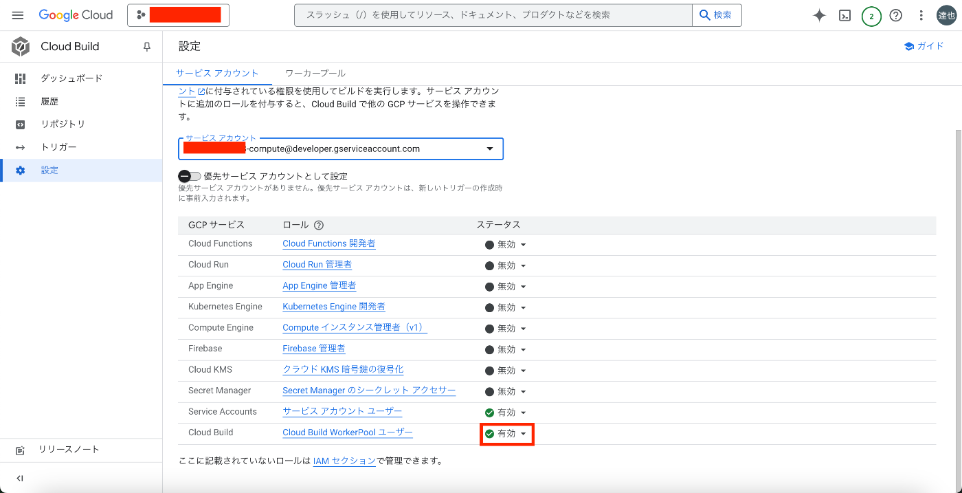 - 必要な権限: roles/cloudbuild.builds.builder