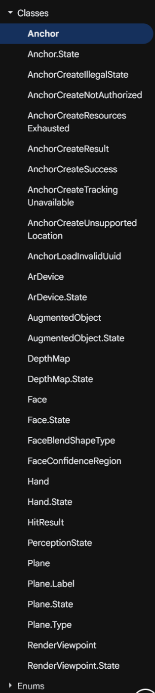 特にARCoreの部分はPlaneとAnchorのページが増えている