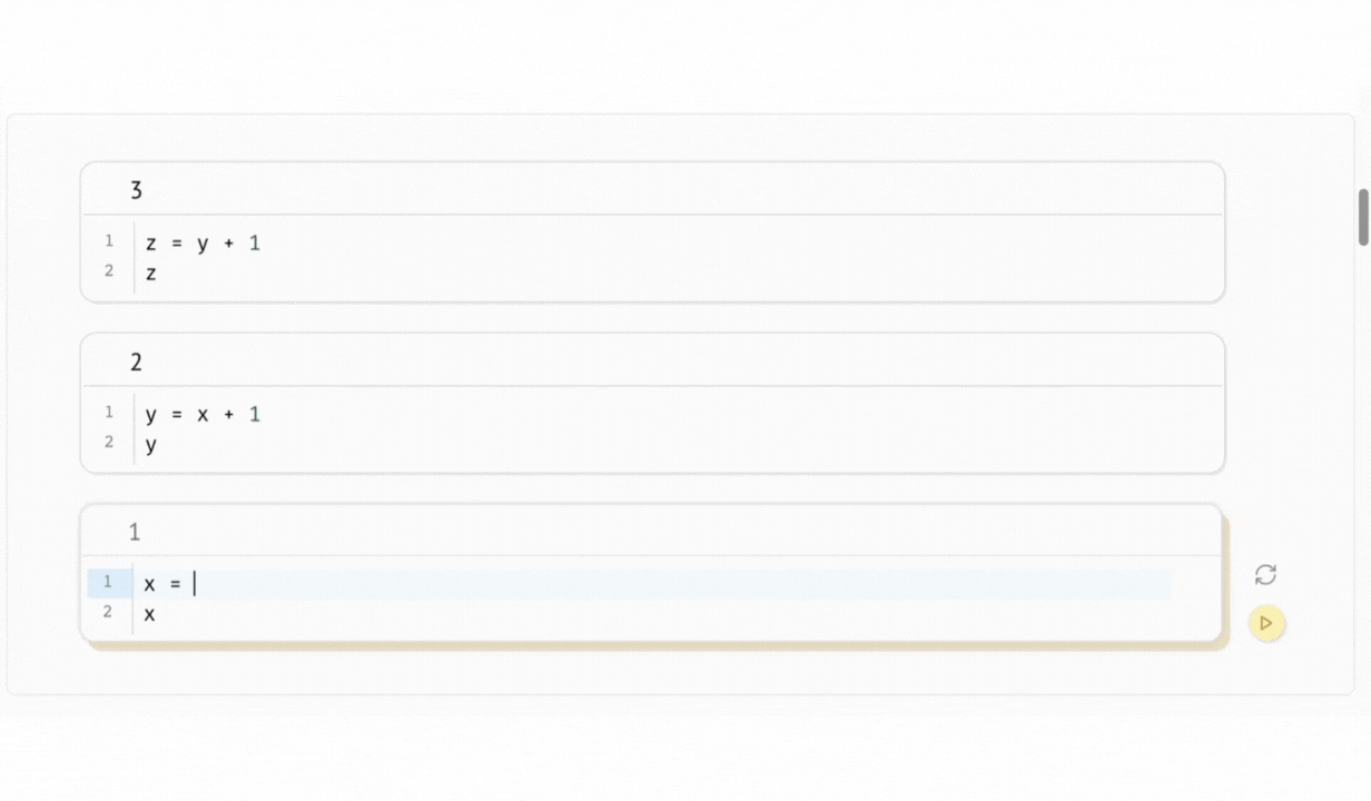 | 実行順序 | セルの順番に依存 | 依存関係に基づいて自動再実行(リアクティブ) |