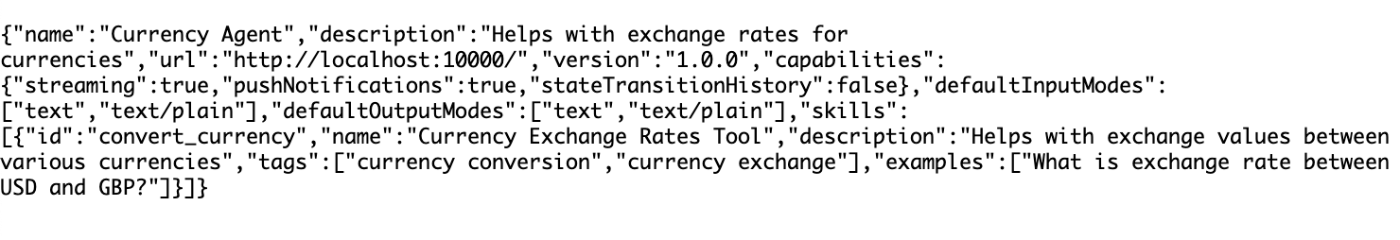 http://localhost:10000/.well-known/agent.jsonにアクセスしてみる