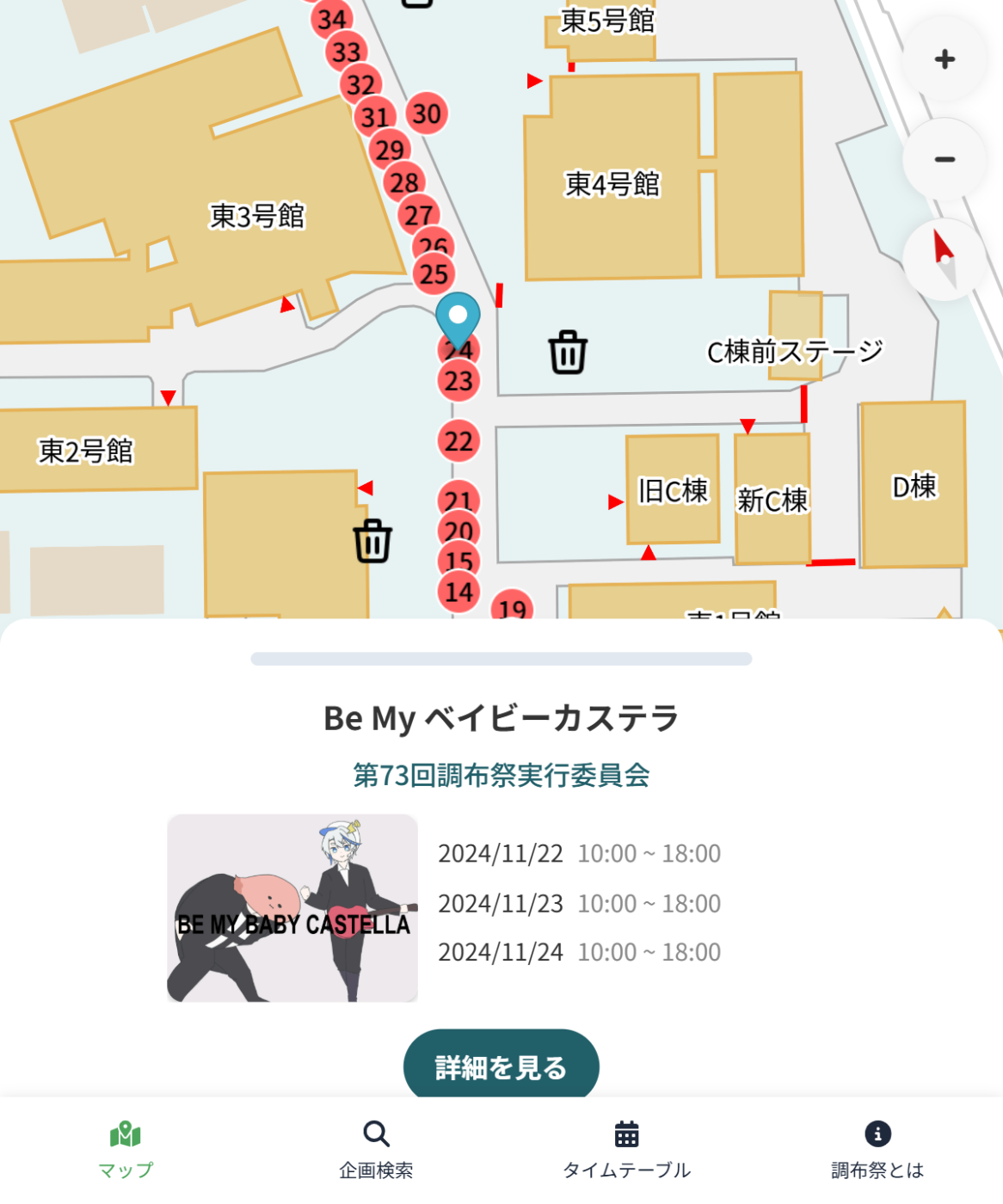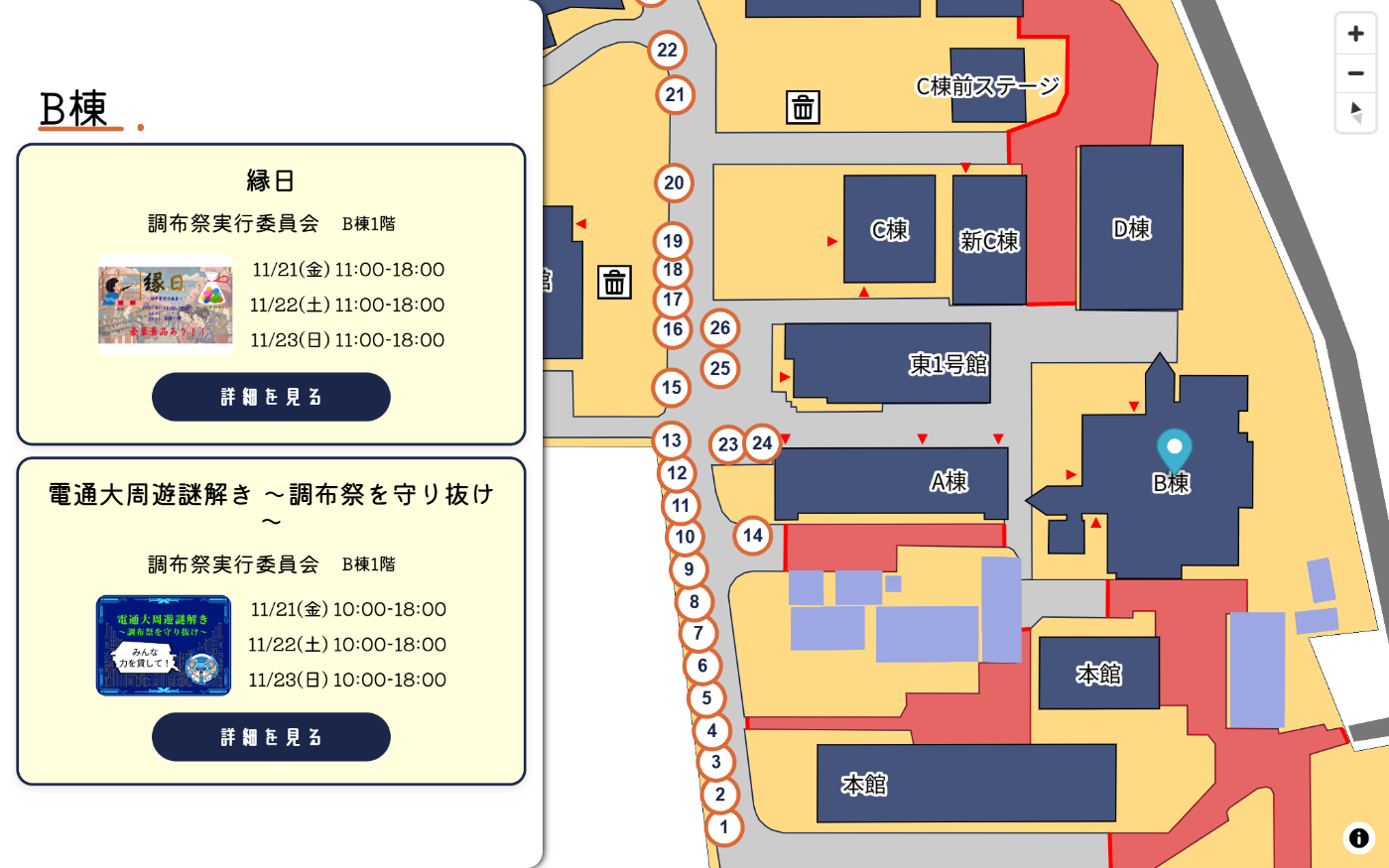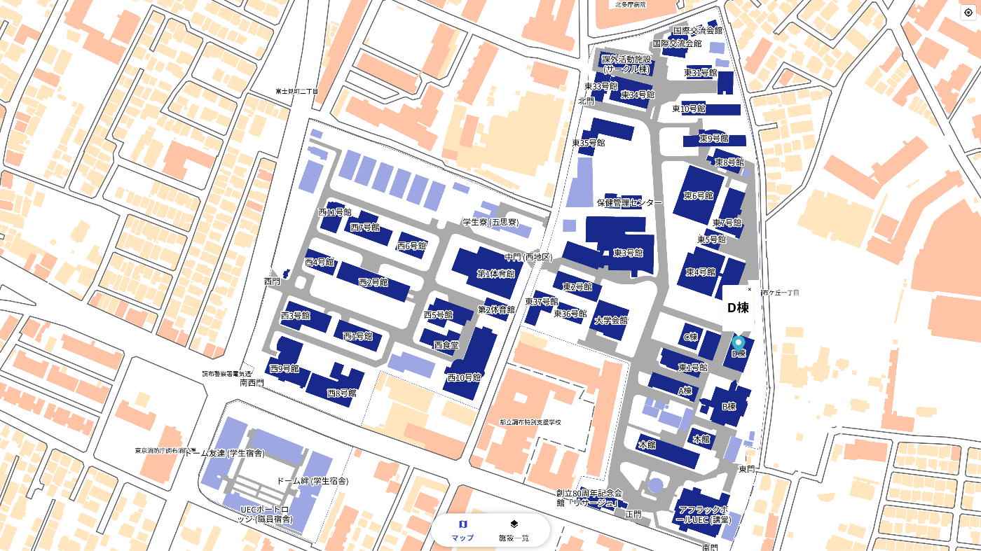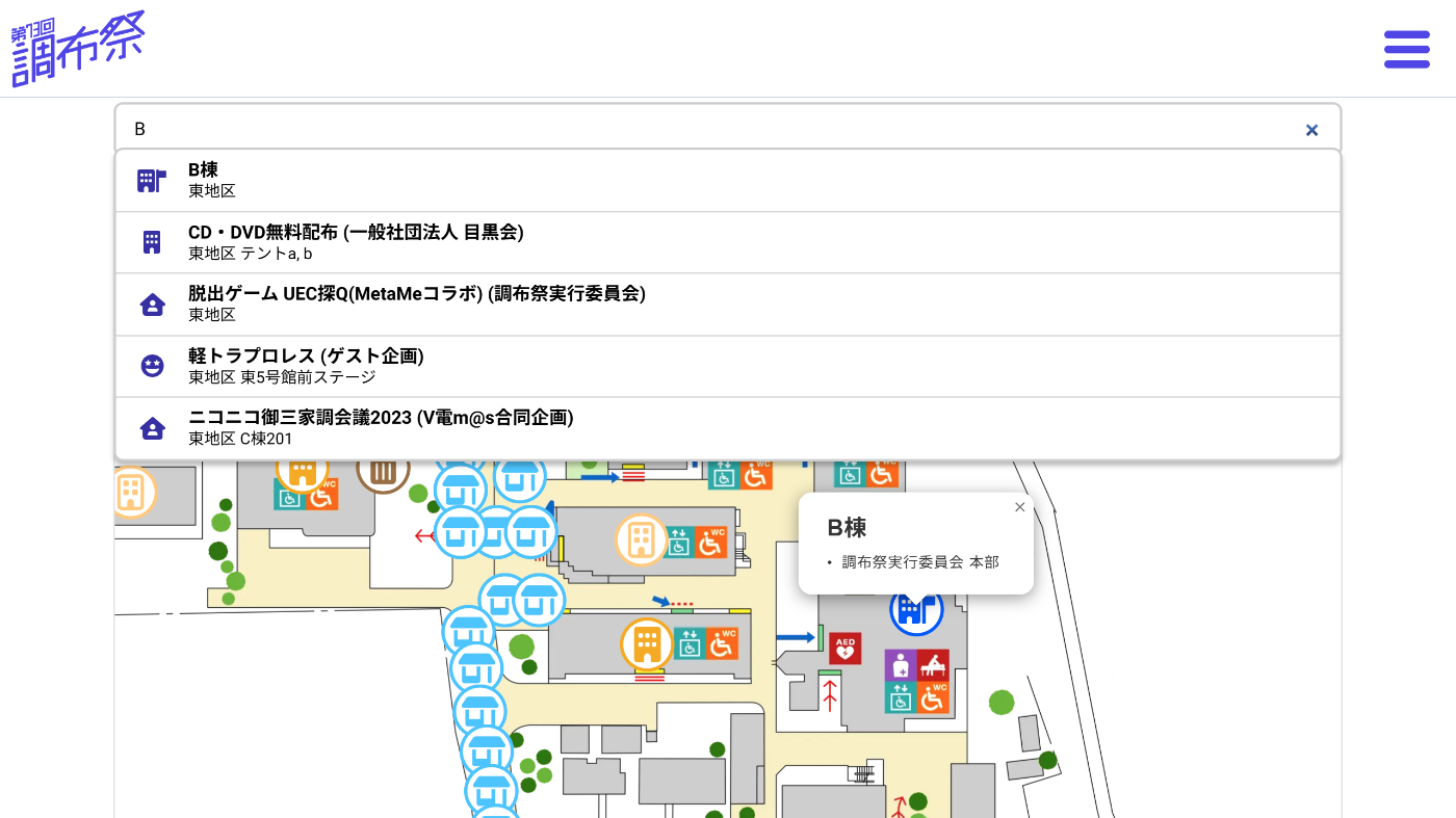 そんなAPIを活用して作られたマップの1つが第74回調布祭(2024年度)および第75回調布祭(2025年度)の学内マップです。