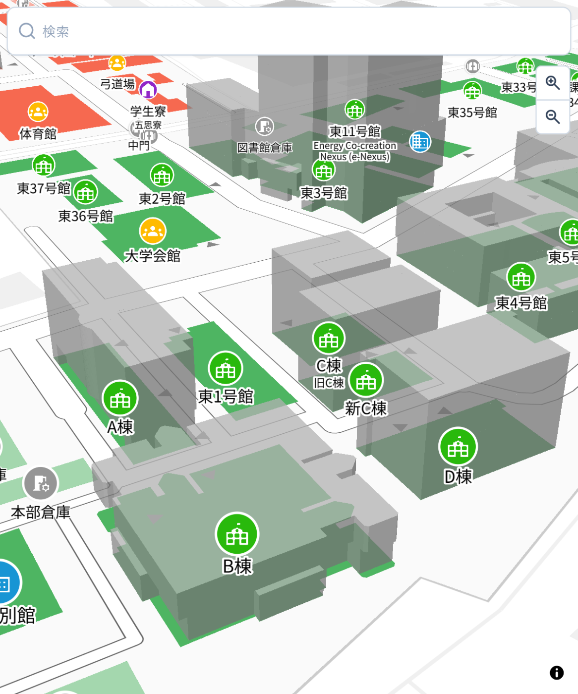 その後、新しく東11号館(e-Nexus棟)が建ったこともあり、地図データに若干の変更を加えたこともありました。