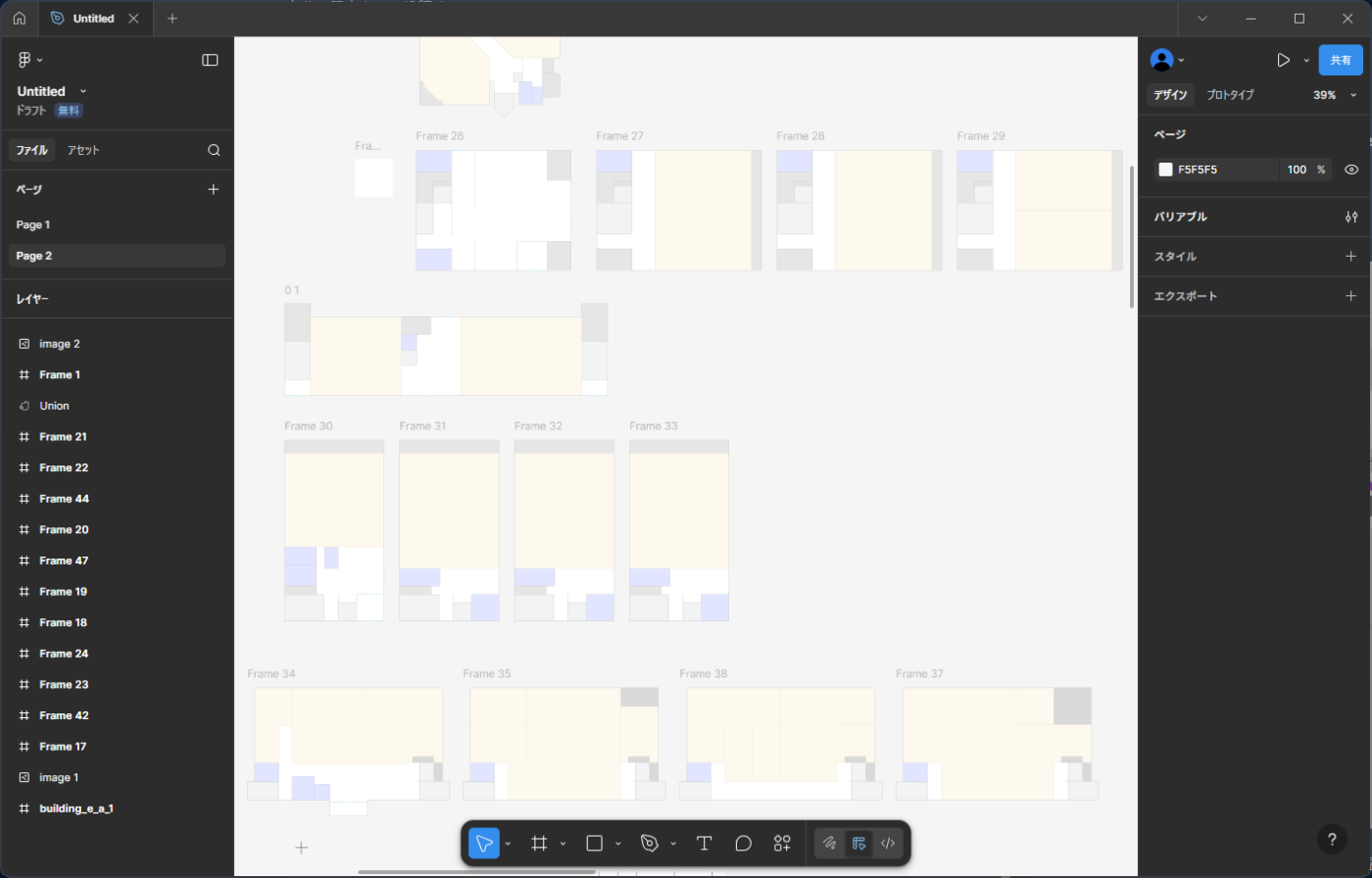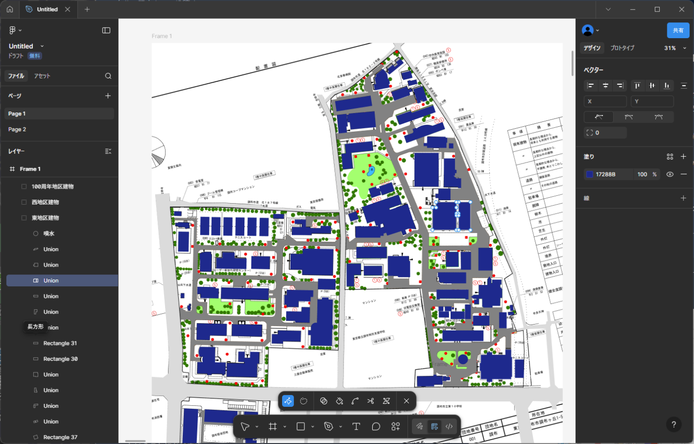 実はこの初期データ、作成に使われているのはFigmaです。学内で公開されていた施設の配置図を手動でなぞりながら地図を作り上げていきました。