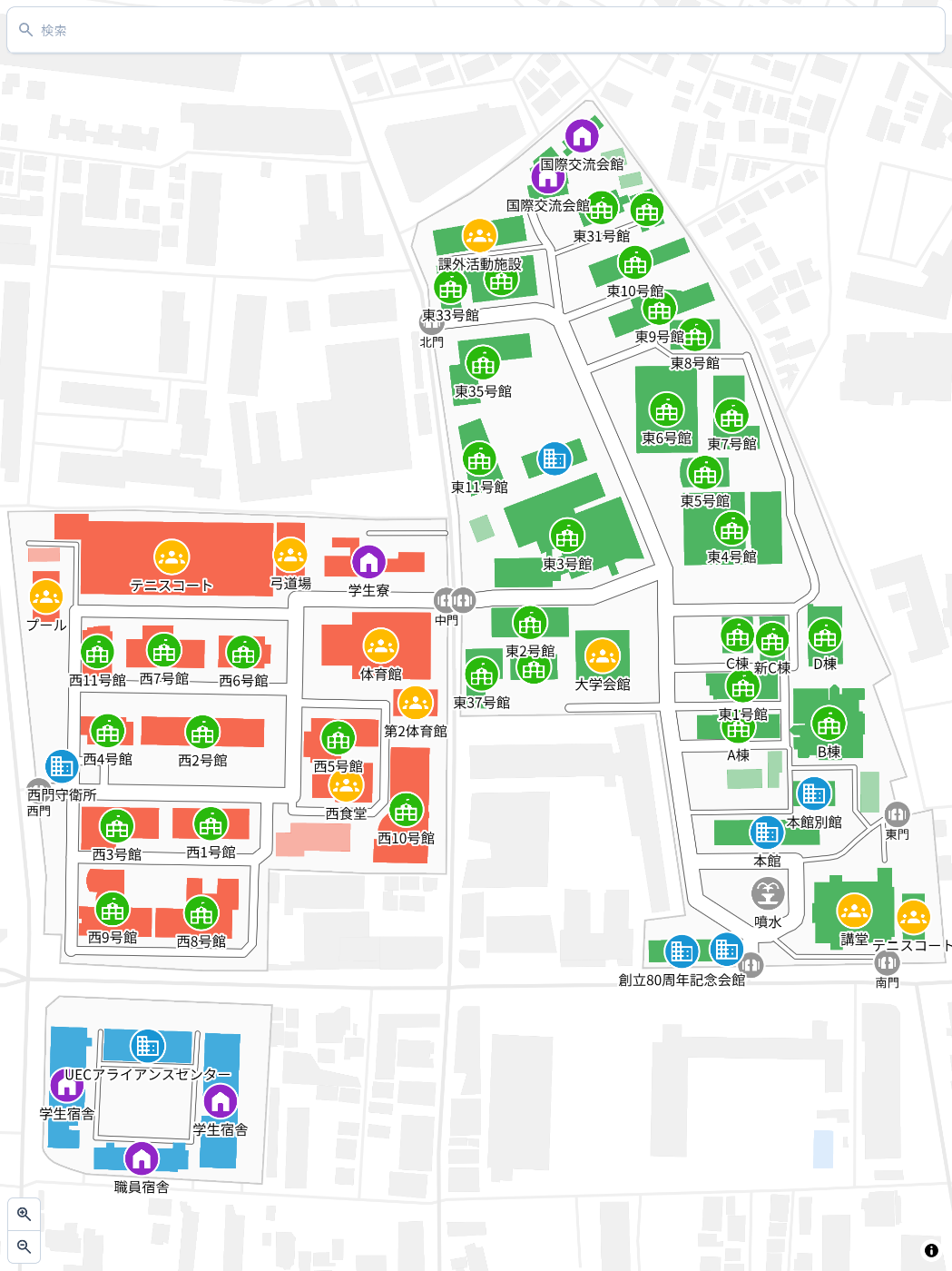 今回の地図を作成するにあたっては、学内向けに公開されている建物の設計や配置に関する各種データを参考にしました。それらを公開してくださっている電通大施設課の皆様に御礼申し上げます。