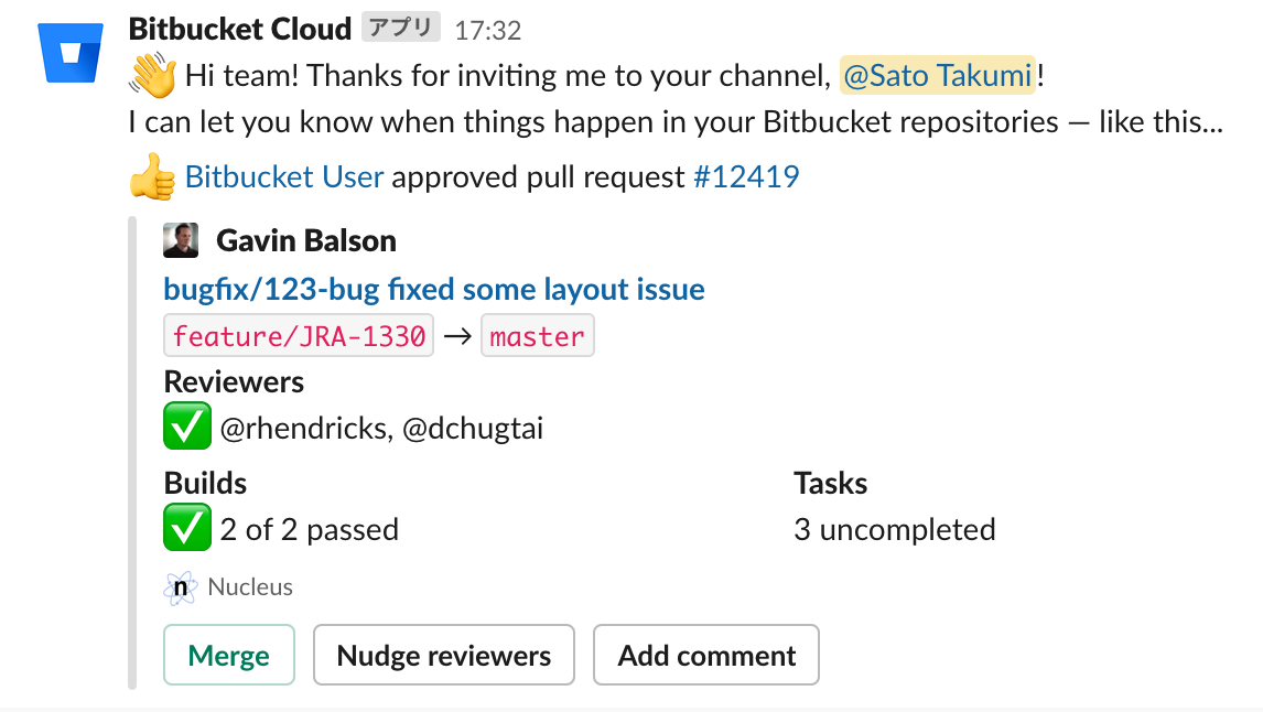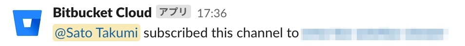 Slack対象チャンネルにBitbucket Cloudアプリを招待