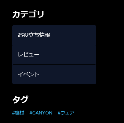 私の個人ブログは、ほぼ全てのページにサイドバーが存在します。サイドバーにはカテゴリとタグが表示されていますが、これはMicroCMS側の情報をapiで取得することで実現しています。