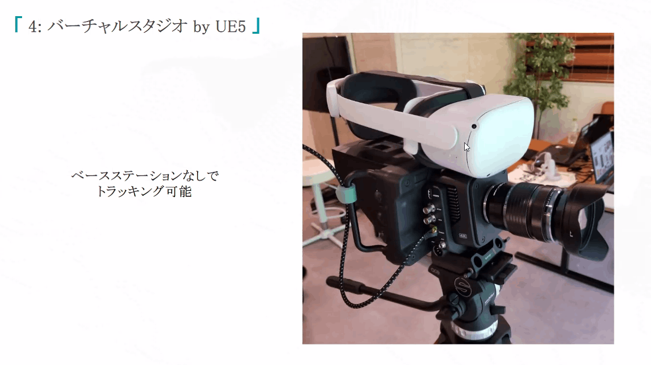 カメラはQuest2のヘッドセットでトラッキングし、アンリアルに送信している。