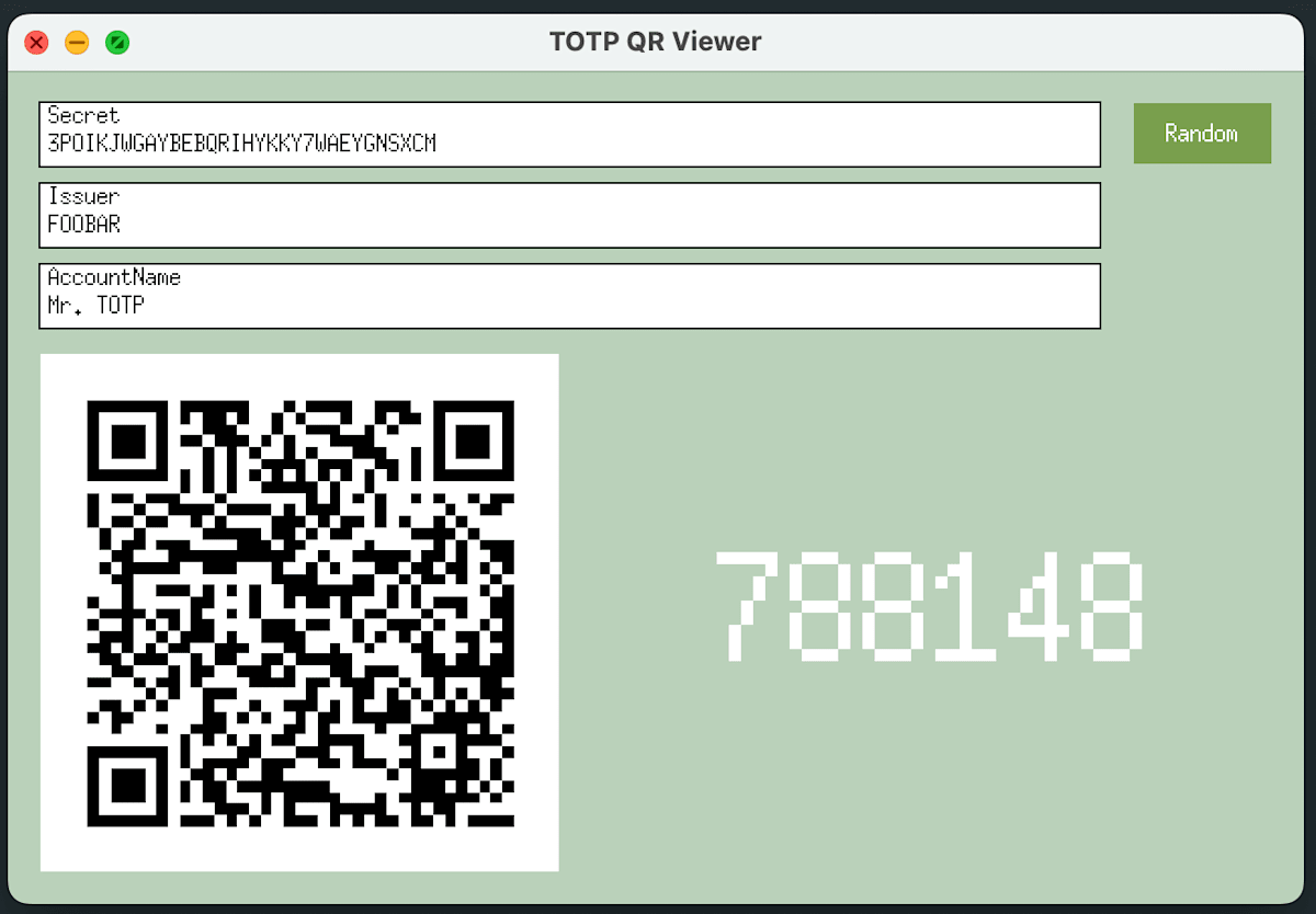 TOTP QRコードを表示するツールです。ちょっとしたGUIアプリケーションを作るのにもEbitengineは便利ですね。