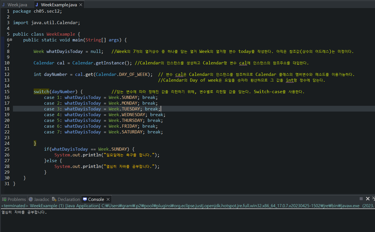 データーの中には限定された値を持っていうデータがある。例えば、曜日は月~日まで7つの値を、季節は4つの値を持っている。このように限定された値をもっているデータタイプを列挙型(Enumeration type)という。ヒープ領域にメモリが保存される参照型データーでもある。