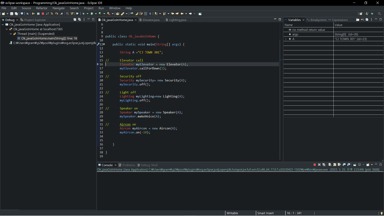 Elevator myElevator = new Elevator(Address+ "님의 자취방의 엘레베이터 위치(현재 고장)");