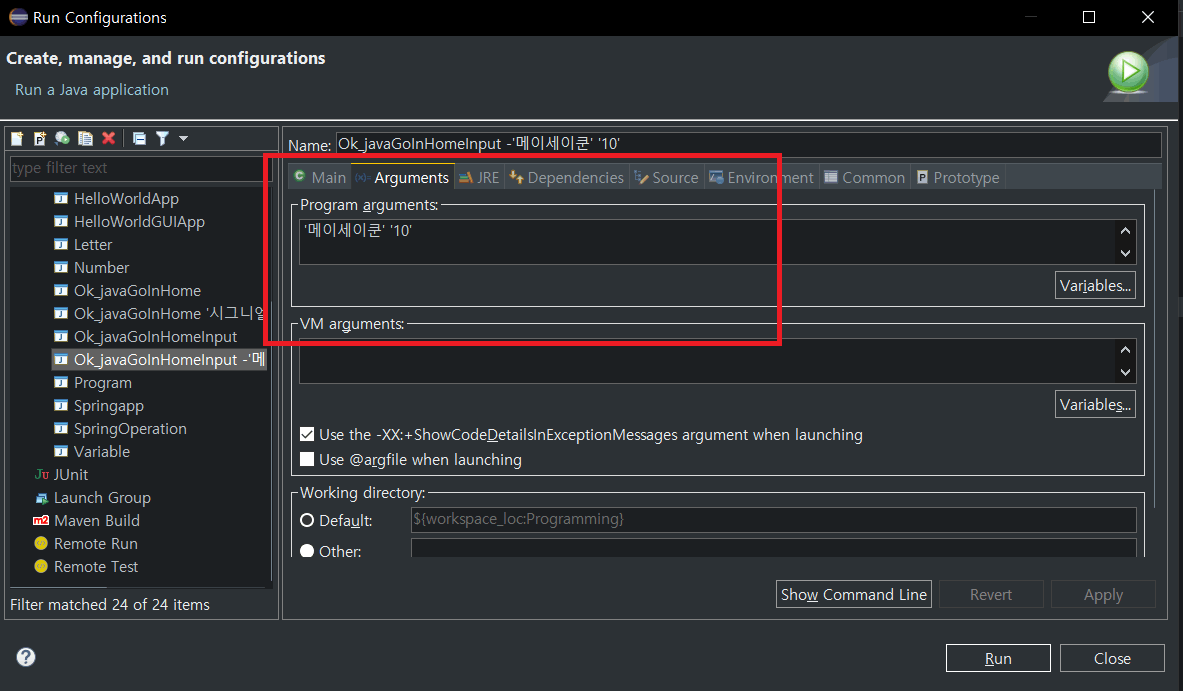 最後にRun configurationから作ったOk_javaGoInHomeInput -메이세이쿤, 10.0を