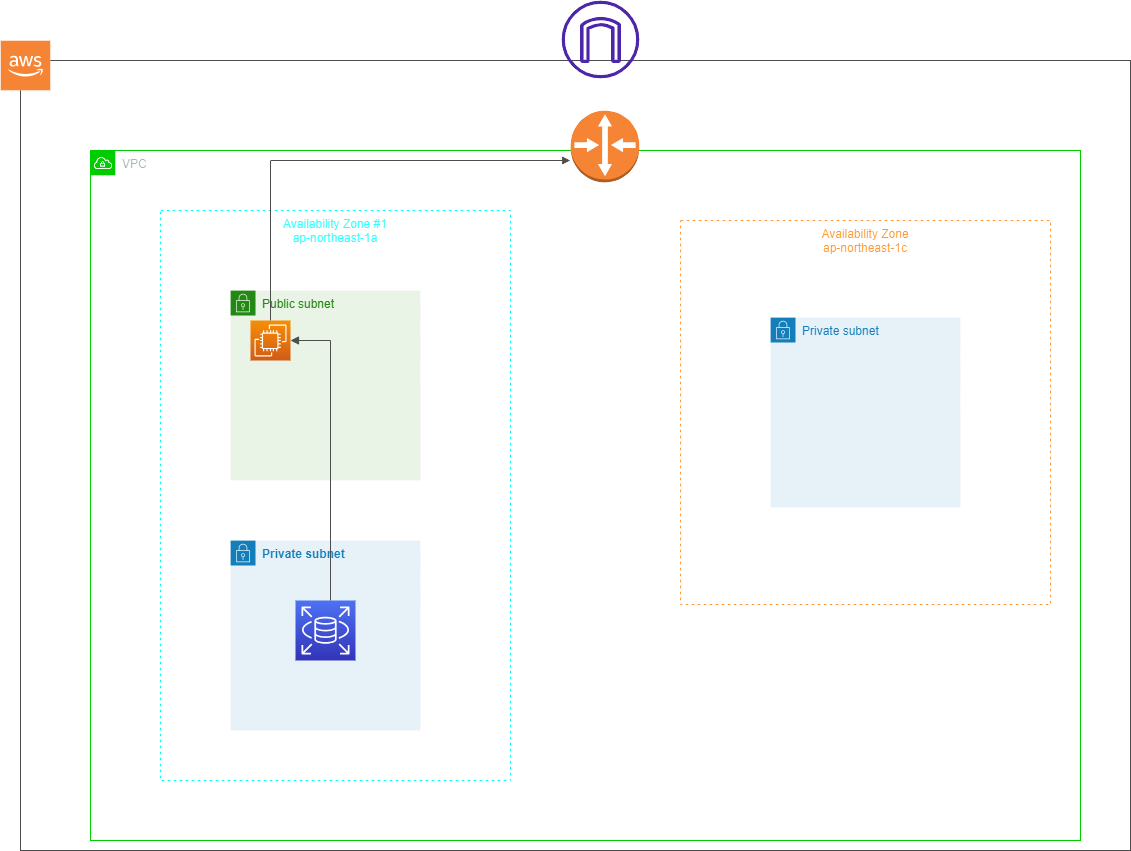 | プライベート用 | プライベートサブネット | インターネットゲートウェイなし(外部と直接通信しない) |