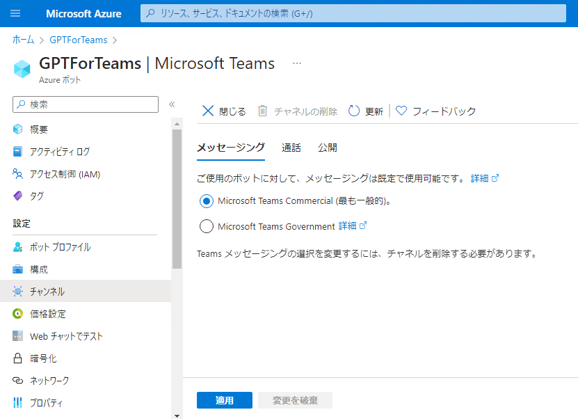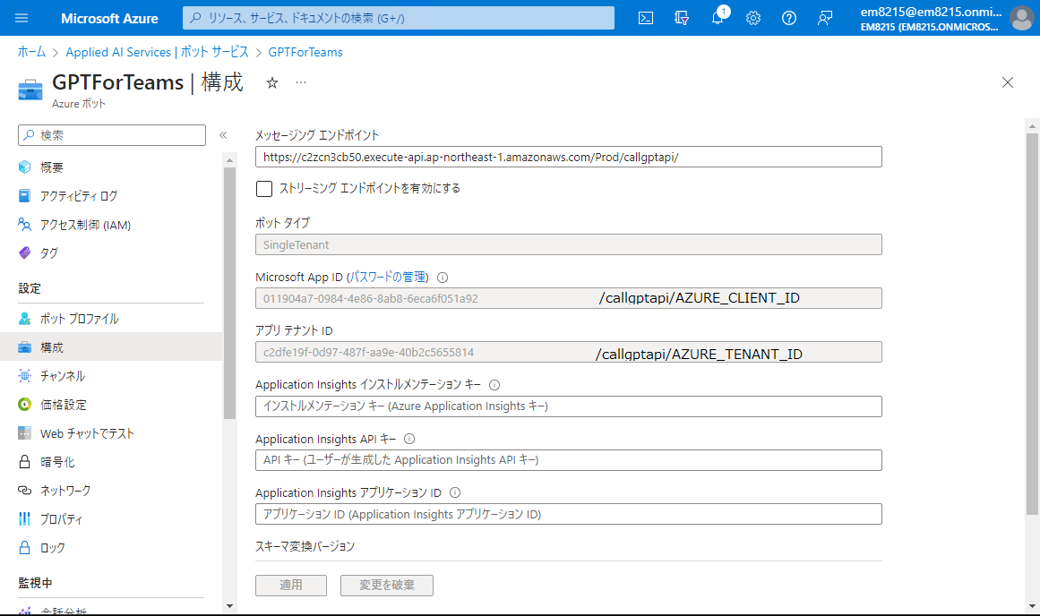 Bot Serviceの使用はTeamsとAPI Gateway間の橋渡しのみとした。ChatGPTからのレスポンスをTeamsに投稿するのは、TeamsのAPIをLambdaから呼ぶようにした。