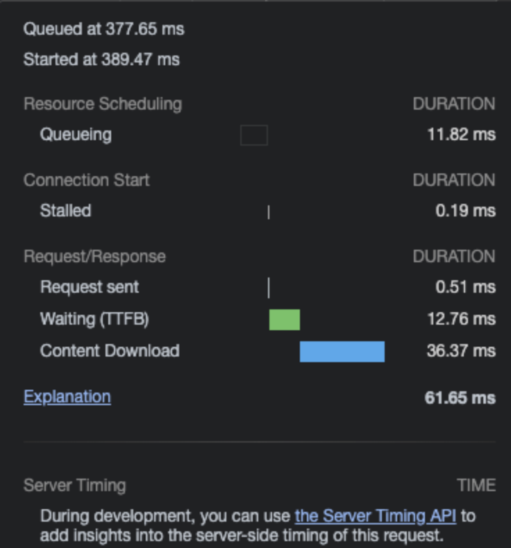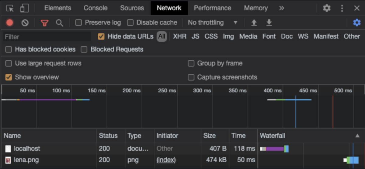 lena.pngのWaterfallの項目にマウスをホバーさせると、以下のような内容が表示されます。画像をリクエストしてから(Request sent)ダウンロードが完了するまで(Content Download)に約40ms 要していることが確認できます。