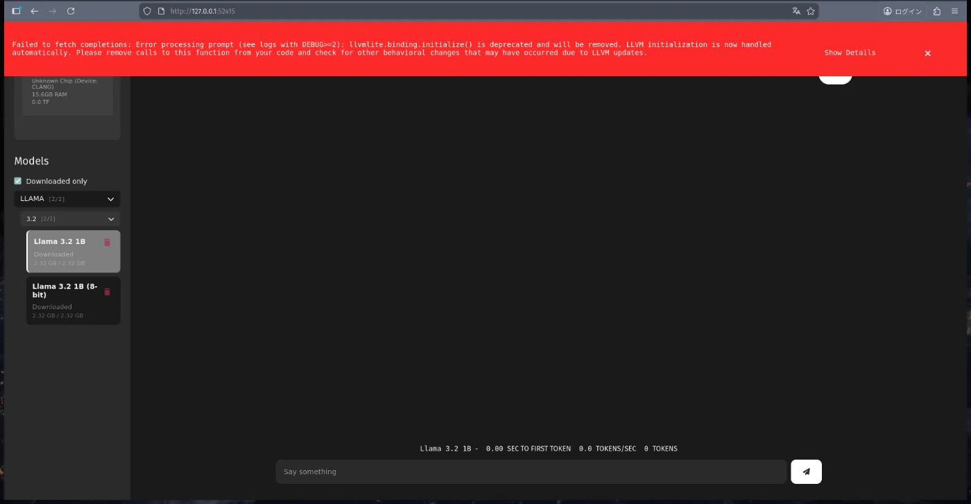あとは、メインとなる操作端末からexoのターミナルUI上部に書いてあるWeb UI(ChatGPTっぽい画面)にアクセスして、モデルを選んでチャットを投げるだけです。
