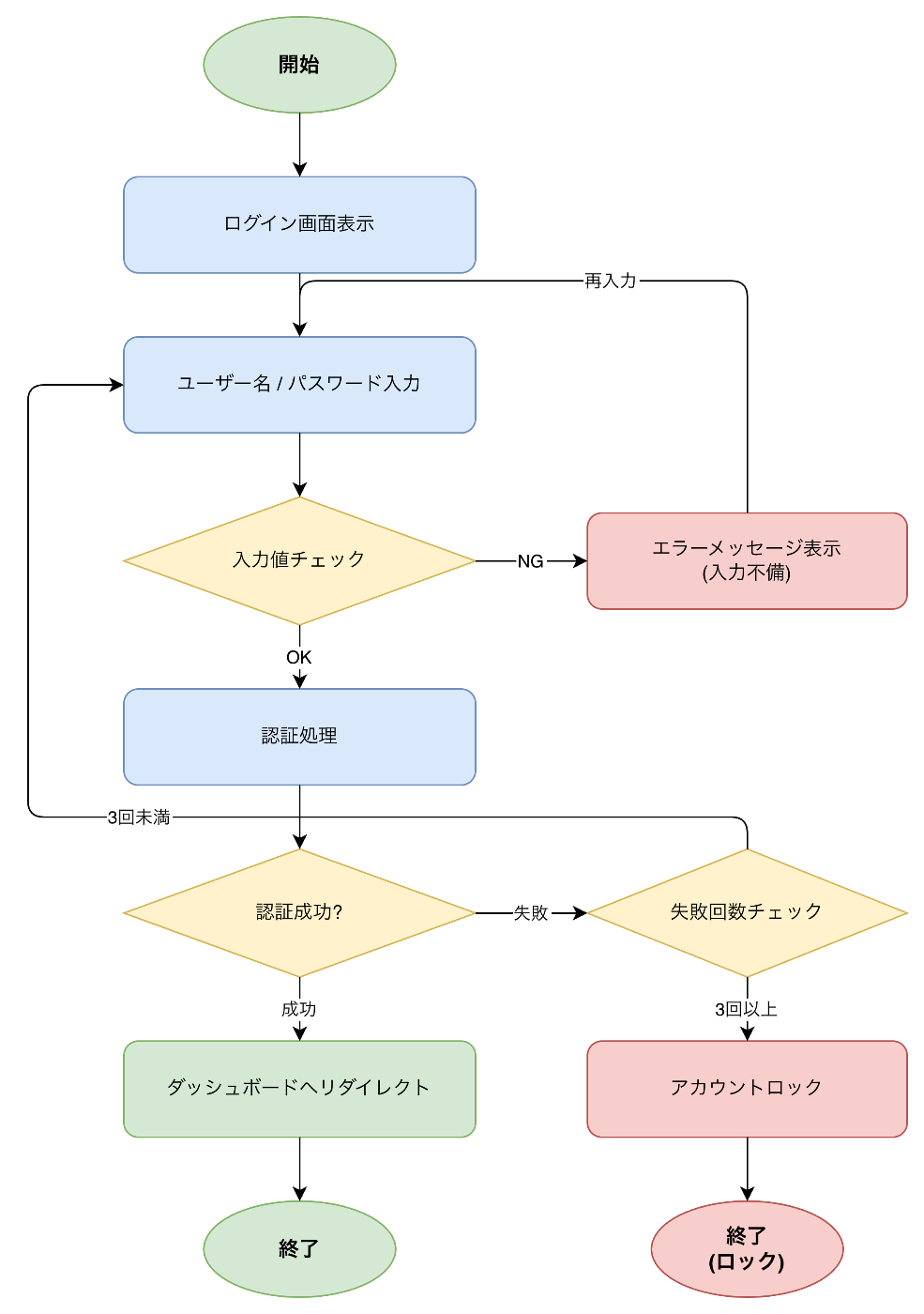 open_drawio_mermaid を使って、ユーザーログインのフローチャートを作成して