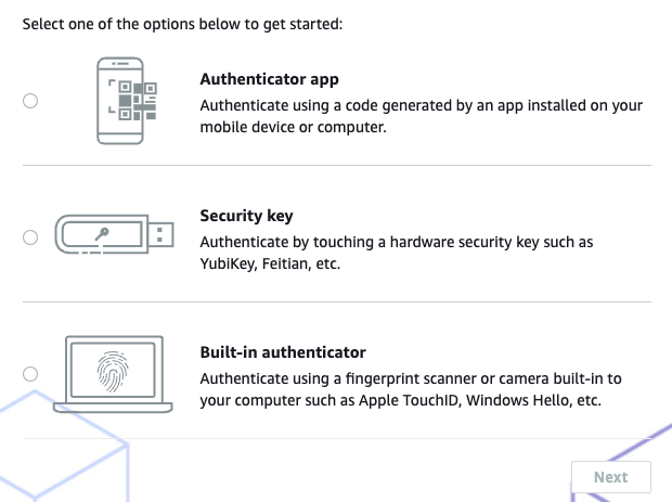 設定後、ユーザー名と設定したパスワードでログインするとMFAの設定が求めらえる