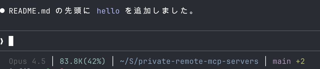 コンテキストが圧迫されてきたら一目でわかるので、/clear や /compact のタイミングを判断しやすくなります。