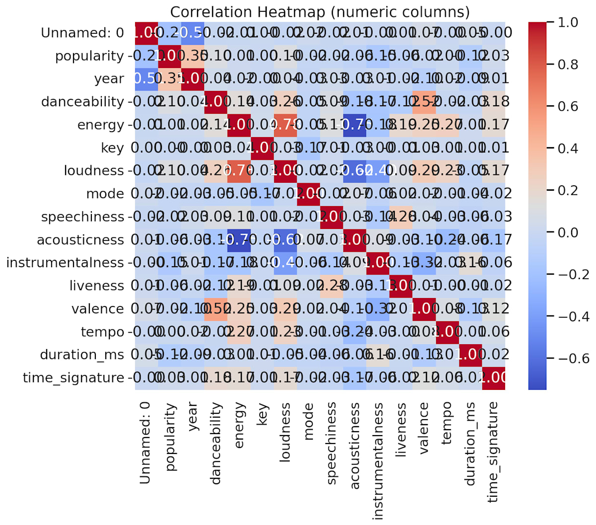 - spotify_numeric_correlation_heatmap.png — 数値カラム間の相関係数ヒートマップ