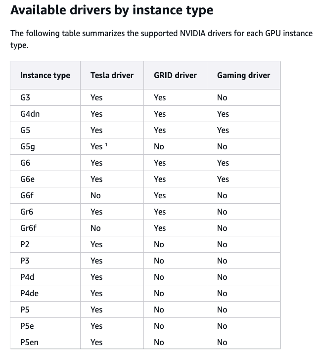 $ aws s3 ls --recursive s3://ec2-linux-nvidia-drivers/
