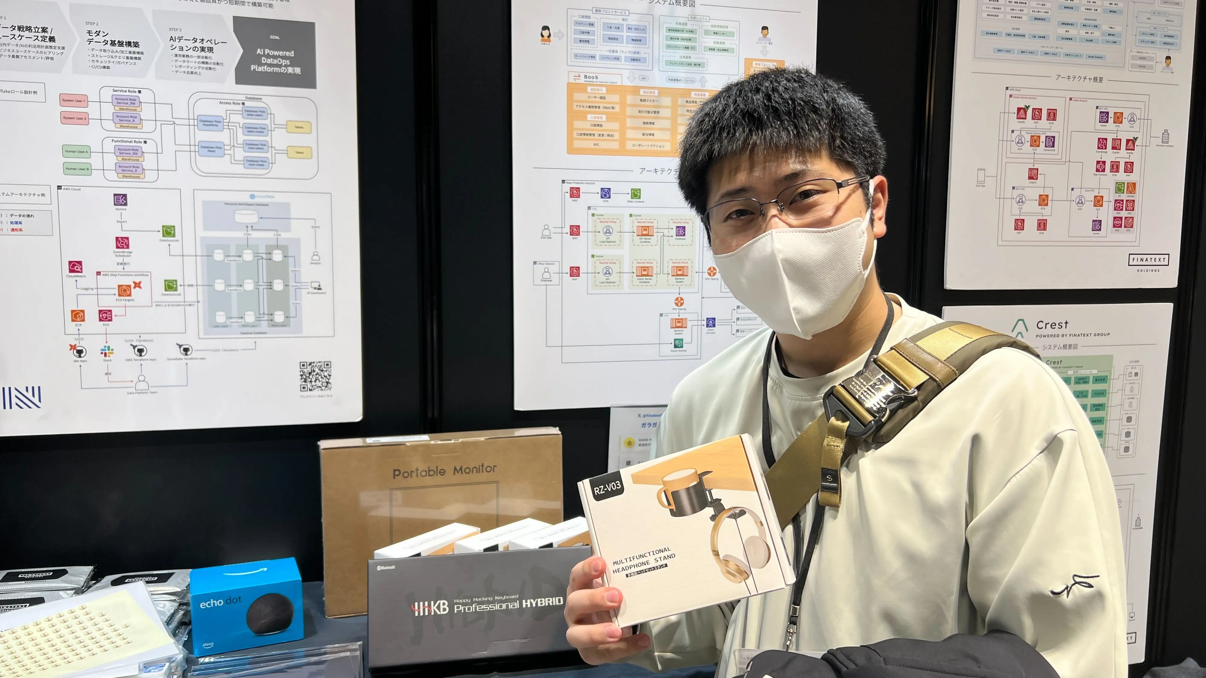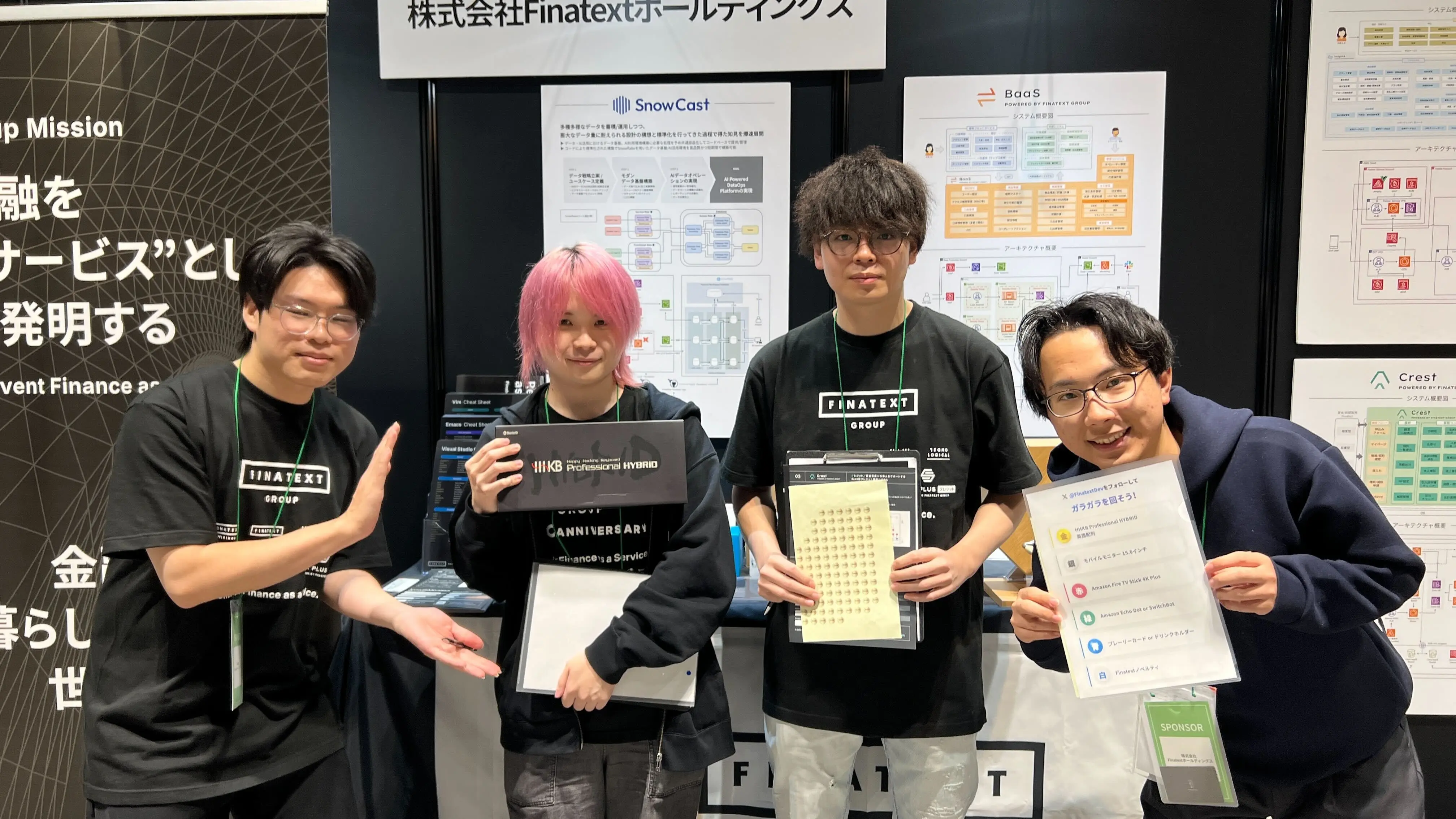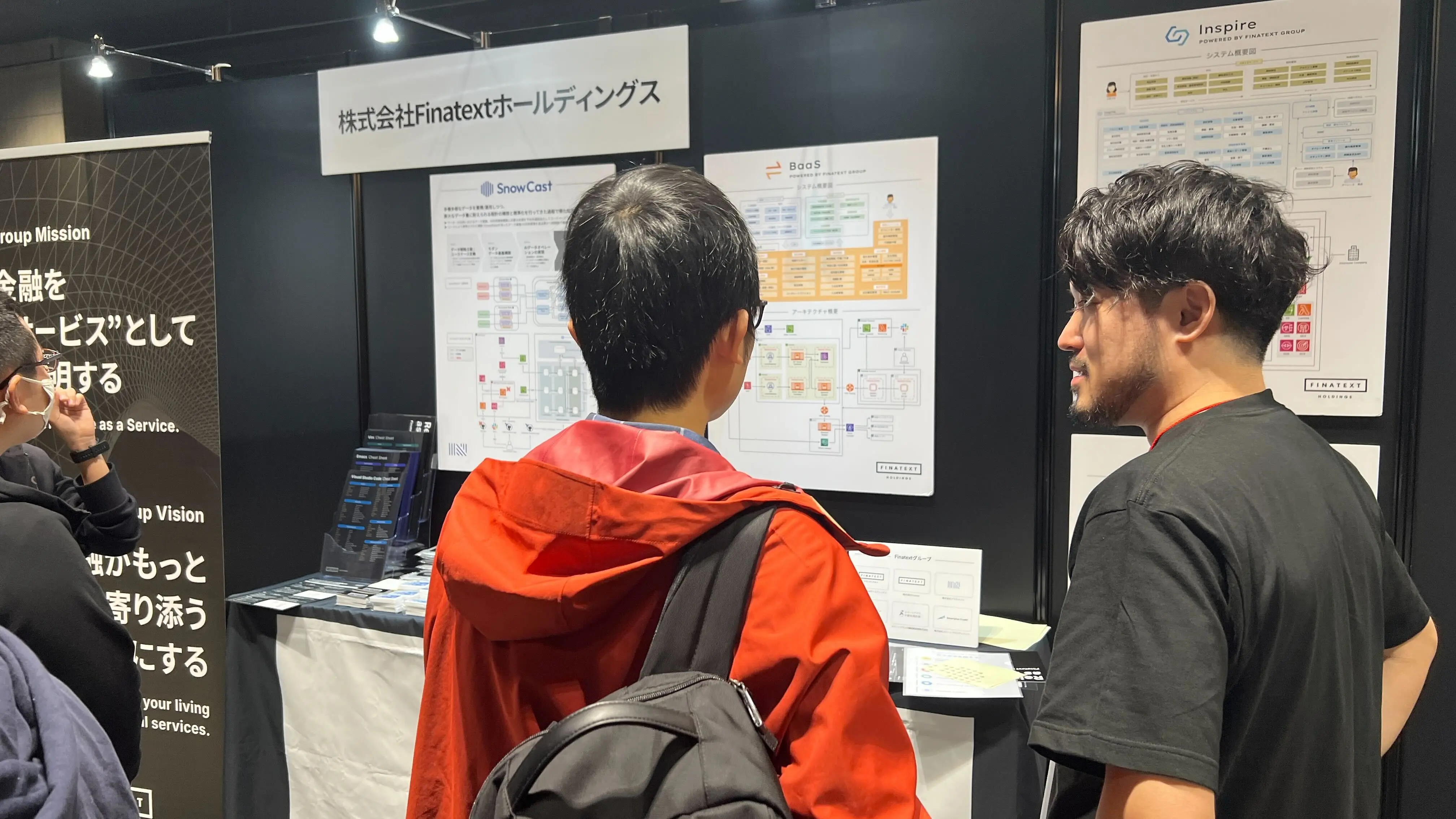 Finatextブースでは、金融インフラストラクチャ事業で提供している証券・保険プロダクトのアーキテクチャや、当社の技術的な取り組みについてご紹介しました。