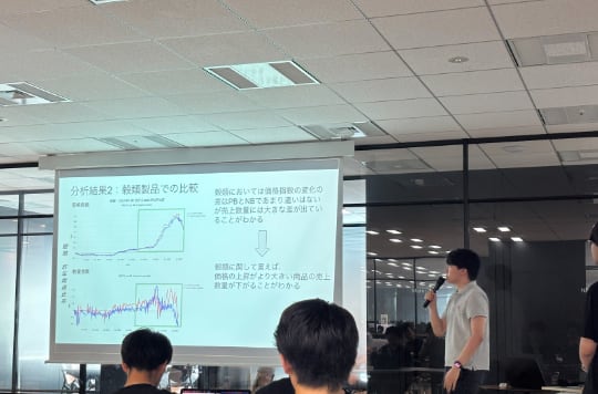 インターン生には分析だけでなく、社員を前にした発表や、発表で使う資料の作成も行っていただきました!