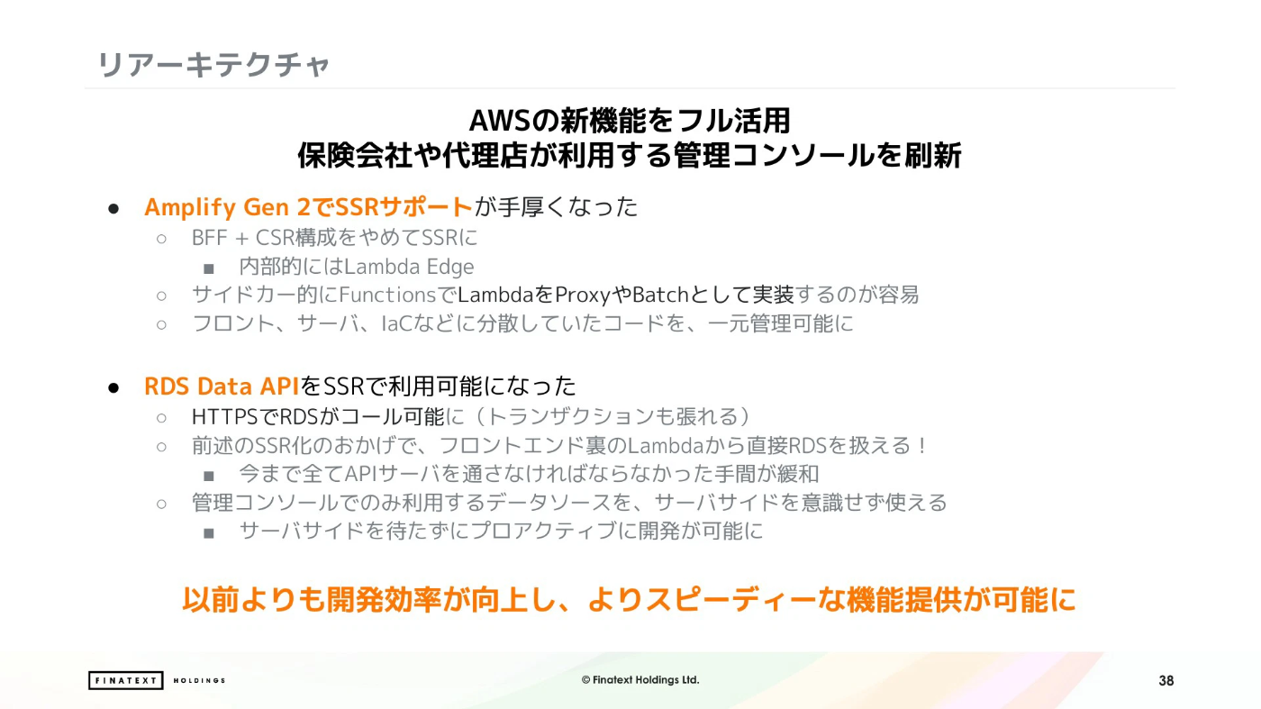 そして、比較的新しい機能であるAmazon RDS Data APIをSSRサーバから呼べるようになったのも大きいです。