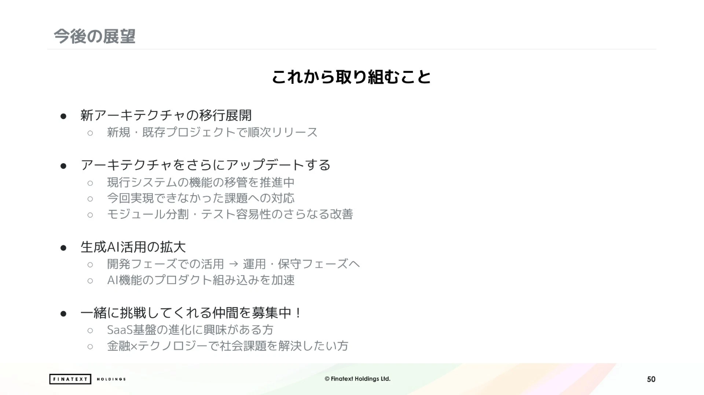 今後の取り組みとして、当然移行を進めていくのもそうですが、新たな機能の拡張をガンガン推進していく必要があります。