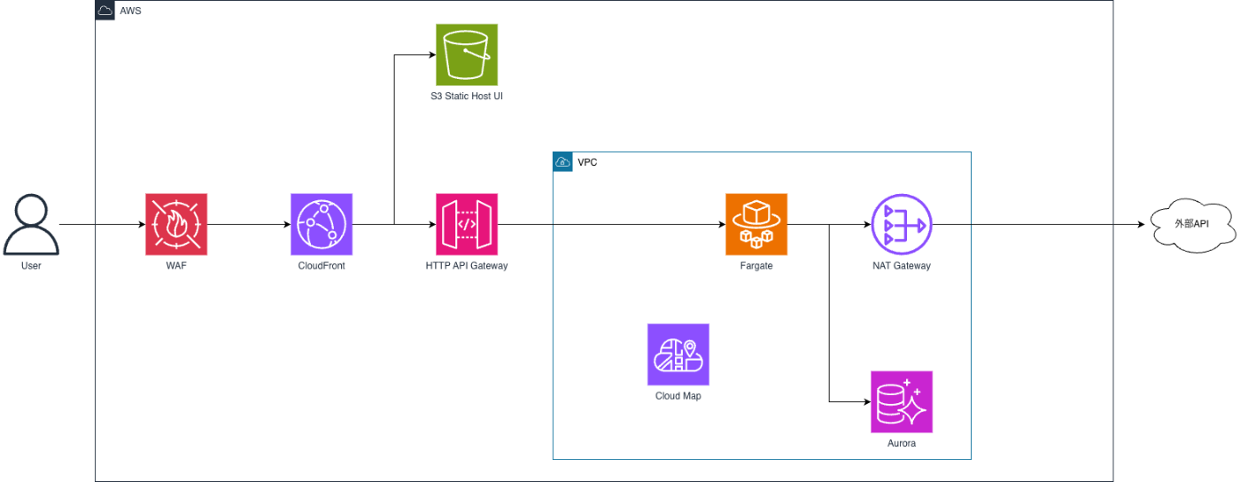 - Lambdaも候補でしたが、Aurora MySQLへのデータベース接続の安定性を考慮し、Fargateを選択。