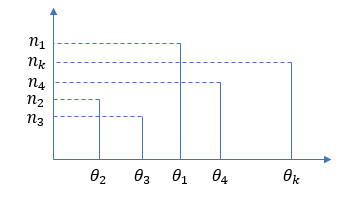 生成するデータは、θ_1 が n_1個、θ_2 が n_2個、... θ_k が n_k個といったような離散データです。