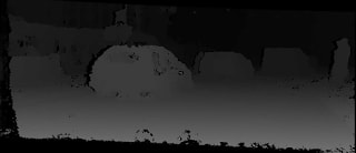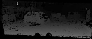 Figure 3: Figure2をOpenCVのブロックマッチングで視差を算出した画像(左)と、本稿で述べているSGMを使用して視差を算出した結果画像(右) 明るさが視差を表している。黒は不明領域