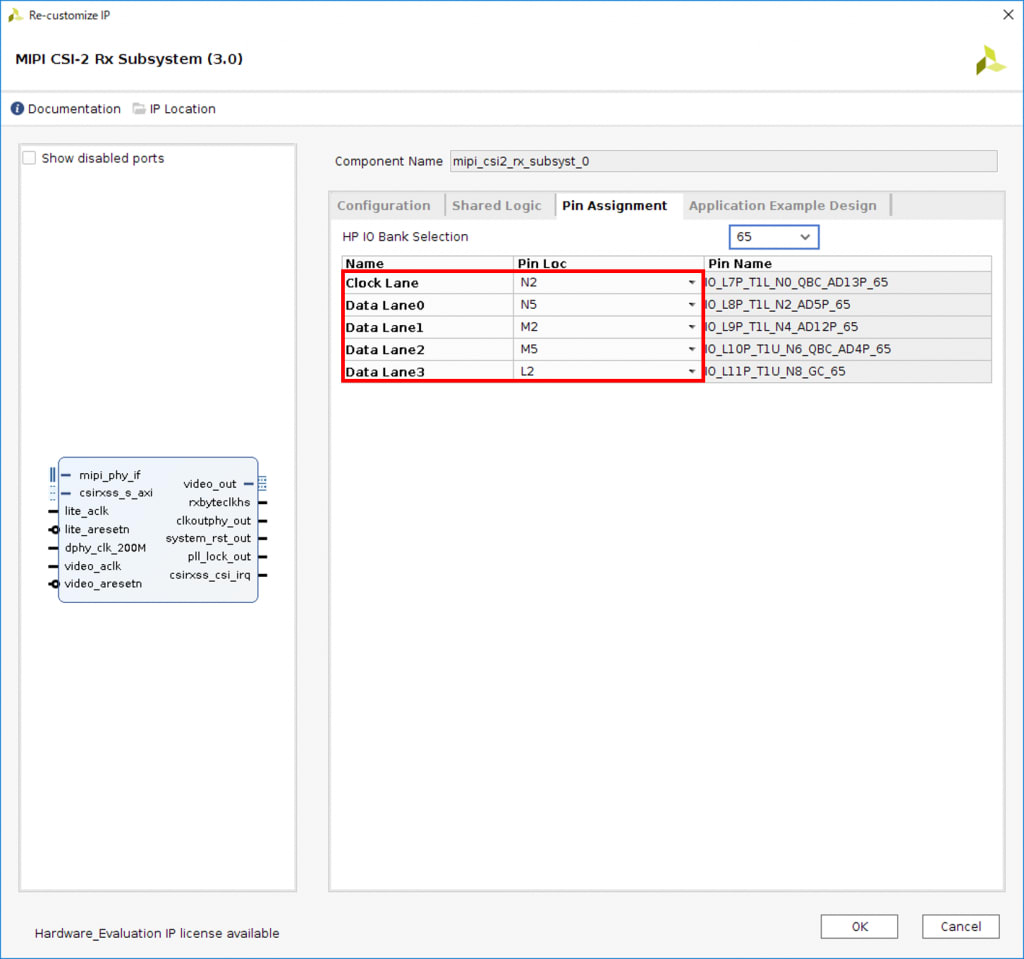 | Pin Assignment タブ | Clock Lane の Pin Loc | T3 から N2 に変更 | CSI0 系統の信号を使うため |