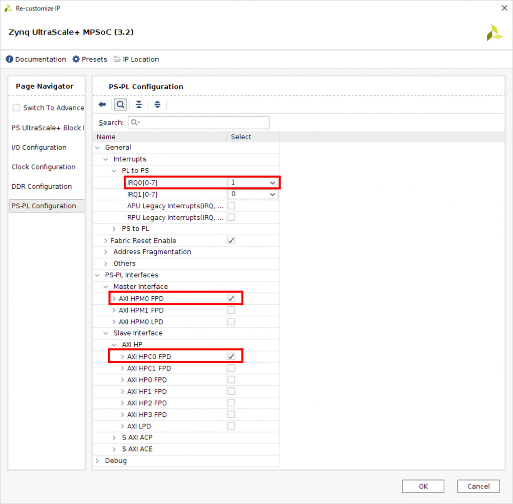 | PS-PL interfaces | Mater Interface の AXI HPM0 FPD | チェックを入れる | AXI-Lite 設定用 |