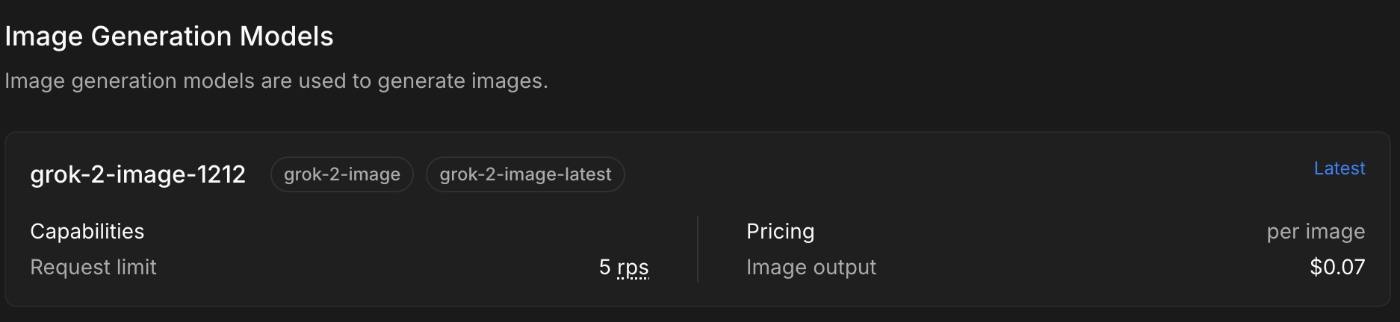 いつからかわからないけど、Grokの画像生成APIきてたので試してみました。