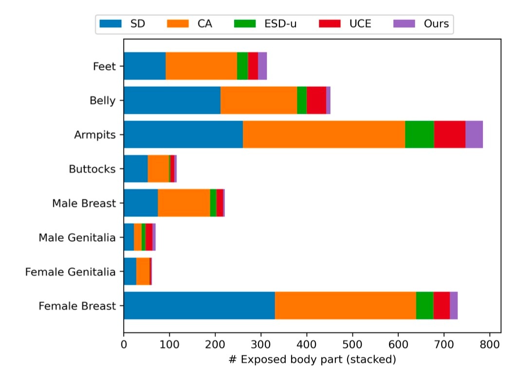 - 特に, 例えばNSFWの消去においては既存研究で使われる頻度が高いNudeNetをなぜ使わないのかの説明がなかったり, 主張が定性的な部分であるにも関わらず定性評価がなかったりと, 少し恣意的な部分を感じます (よく見せるために別のものをもってくるといった感じです).