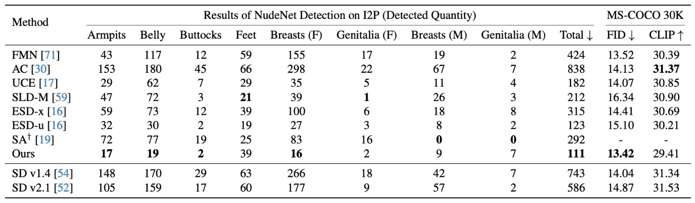 - これはこの論文に限った話ではないですが, styleの結果に関してCLIP Scoreを用いることは正しいのでしょうか. NudeNetのように分類器を用意した方がいいように思えます.