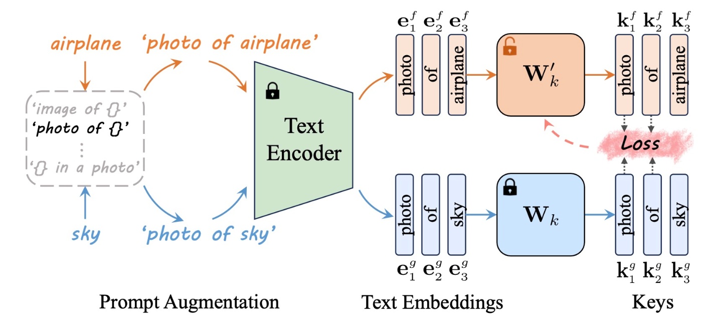 まずは(b)の部分を確認します. attentionでは, keyとvalueが他のtokenからの情報を吸収します. そのため, この2つの射影行列を更新するする必要があります. 直感的な理解はこれまでの手法と同じで, ターゲットフレーズと共存する単語のkeyを, ターゲットフレーズが置き換えられた概念の別のプロンプトの同じ単語のkeyにmappingさせます.