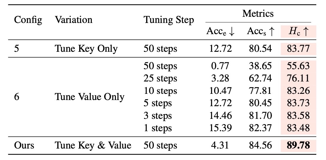 次に, どのパラメータを変化させるかを確認します. ステップ数を揃えたときに, Valueのみを変化させると他の概念に強く干渉することがわかります. そのため, Valueのみを更新することはあまり適切とは言えなさそうです.