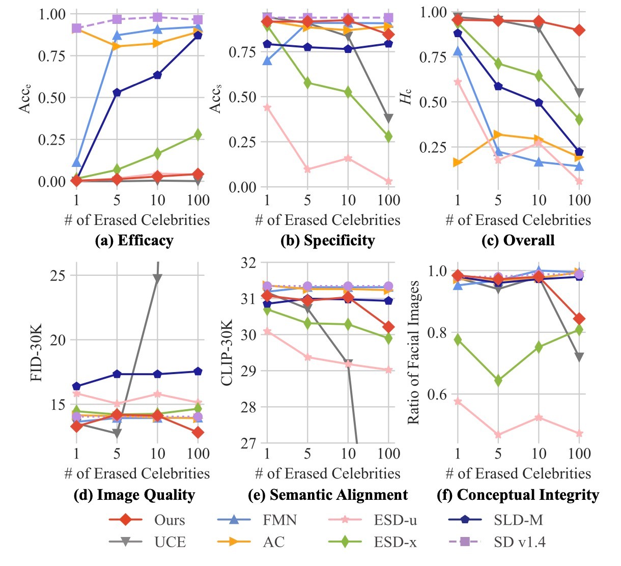 続いて, Celebrity Erasureの結果をみます. この結果を通じてmulti conceptsの消去性能も確認しています.