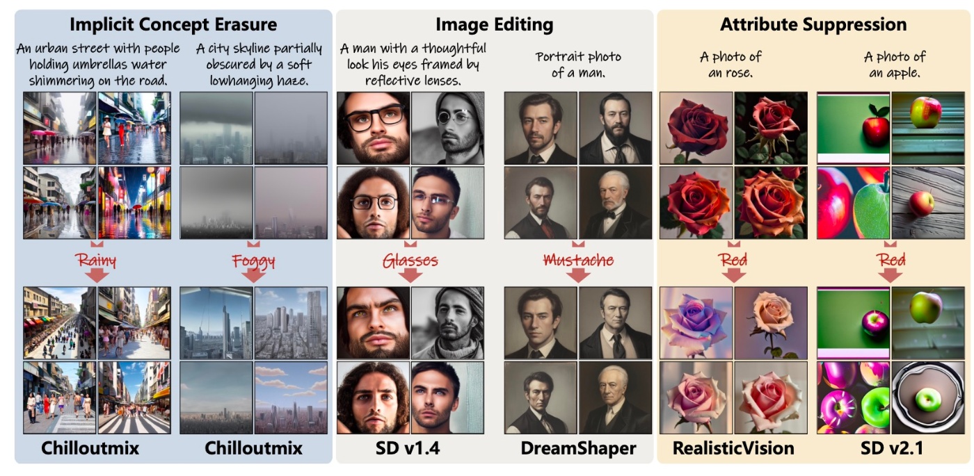 他の2タスクに関しても同様に概念消去の効果が出ているのではと思います (画像編集については何をしているのか不明ですが).