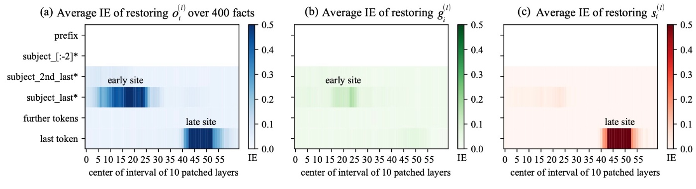 この正しい事実予測に対する各状態の寄与を推定するために, 3つの異なる実行にわたってモデルの活性化を収集します.