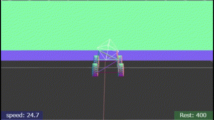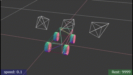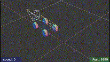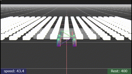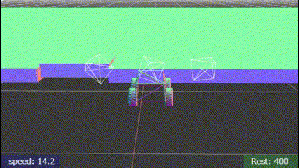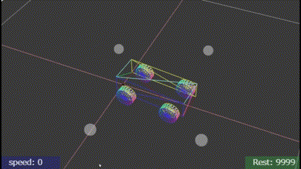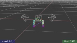 ドリルを三つに増やしました。増やしただけでは芸がないので、中央のドリルは威力を強め(速度の二乗に応じた力で吹っ飛ばす)にしてます。車の前方のみが重くなっておりバランスが悪くなってますが、威力は折り紙付きです。対黒オブジェ(重い)用といってもよいくらいの吹っ飛ばしをみせてくれます。