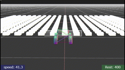 気持ち大きめのサイズにして、地面にふれるギリギリまで下げてます。極薄のオブジェクトでも引っかかるように調整してますが、車の傾き(加速中)によっては拾えないときがあります。