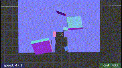 ラッセル車のように爽快に吹き飛ばす感じにしたかったのですがどうでしょうか?もっと多量に配置しても処理落ちしなければなぁ。