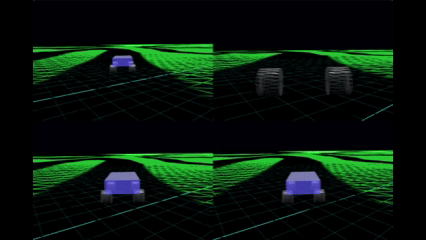 特に初期位置が正反対だと収束(後方に位置)するまである程度移動する必要があります。 - 地面に傾斜があると地面の下にもぐりこんでしまうことがあります。
