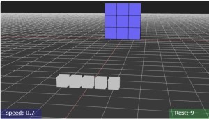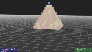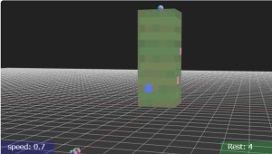 立方体で構成したタワーはどうしても崩れるので、それを逆手にタワーの根本に対象(球)を置いてます。ちなみにタワー自体は場外の対象ではないので場外に出してもカウントダウンしません。