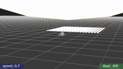 ちなみに「ジャンプ」はそれなりの速度を保ったうえでスペースキーを押さないと高く飛びません。また、ジャンプ中に重ねてジャンプもできますが、ジャンプ時に車体を傾ける仕様なので、ジャンプしまくるとトンデモナイ方向を向くことに。ちなみにバック中にジャンプすることを想定してなかったのでおかしな挙動になります。
